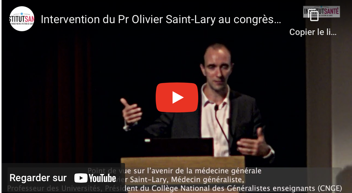 Au cours du congrès national de l’Institut Santé qui s’est déroulé à Paris le 12/10/2022 en présence de Parlementaires de l’ensemble des partis politiques présents à l’Assemblée Nationale, le Pr Olivier Saint-Lary, a donné son avis sur la place de la médecine de ville en général et du médecin généraliste en particulier proposé dans le programme de reconstruction de notre système de santé.