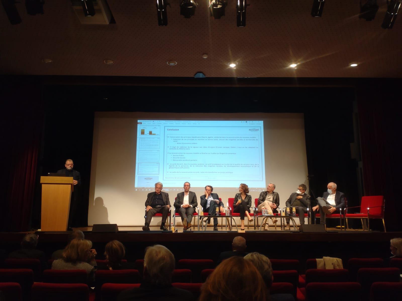 Au cours du congrès national de l’Institut Santé qui s’est déroulé à Paris le 12/10/2022 en présence de Parlementaires de l’ensemble des partis politiques présents à l’Assemblée Nationale, 4 grands témoins – Sophie Beaupère (déléguée générale Unicancer), Gilles Bonnefond (Pharmacien, ex Président USPO), Pr Laurent Lantiéri (Chirurgien, APHP), Dr Jérôme Marty (Médecine Généraliste, Président UFMLS) – ont donné leur vision sur la reconstruction de notre système de santé.